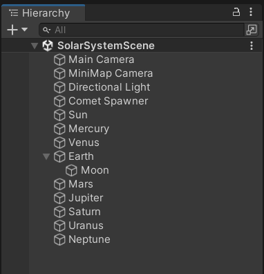 This is my Solar System project. I have added the remaining planets in the Solar System in addition to the ones shown in the tutorial.